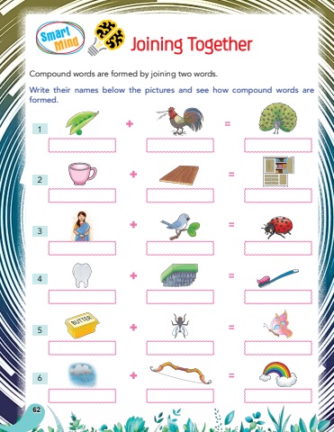 SmartMind62Joining TogetherCompound words are formed by joining two words.Write their names below the pictures and see how compound words are formed. 123456