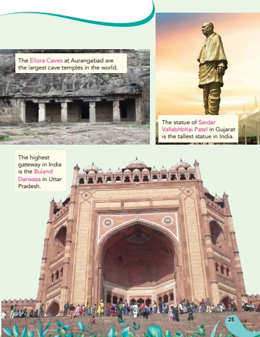 The highest gateway in India is the Buland Darwaza in Uttar Pradesh.The Ellora Caves at Aurangabad are the largest cave temples in the world.The statue of Sardar Vallabhbhai Patel in Gujarat is the tallest statue in India.25