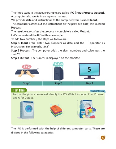 Look at the picture below and identify the IPO. Write I for Input, P for Process,