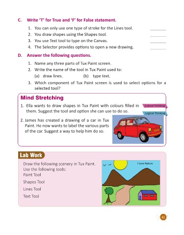 1. Ella wants to draw shapes in Tux Paint with colours filled in Critical Thinking