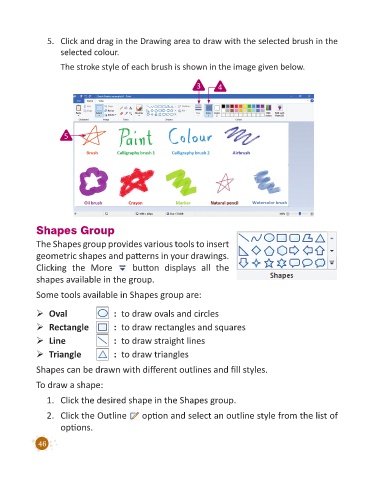 Some tools available in Shapes group are: