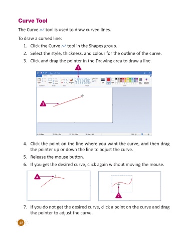 The Curve tool is used to draw curved lines.
