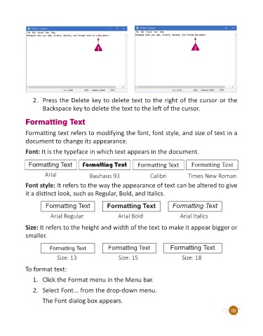 Formatting text refers to modifying the font, font style, and size of text in a