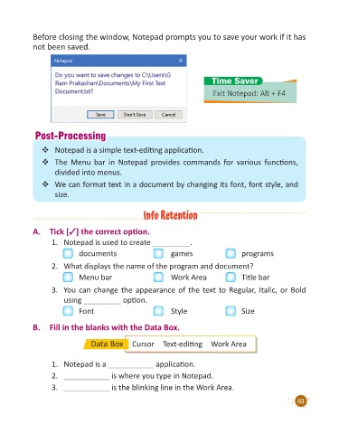 Before closing the window, Notepad prompts you to save your work if it has