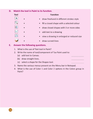 D. Match the tool in Paint to its function.