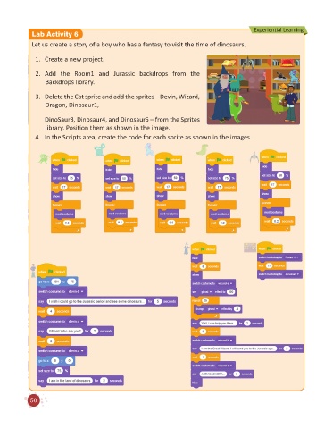 4. In the Scripts area, create the code for each sprite as shown in the images.