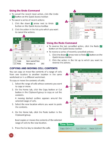 5. Press the Esc key to deselect the cells. Copy: Ctrl + C Cut: Ctrl + X Paste: Ctrl + V