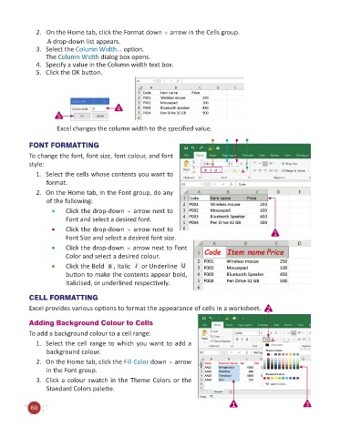 Excel provides various options to format the appearance of cells in a worksheet. 2