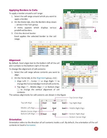 change the horizontal alignment of cell contents.