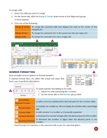 Merge & Center To merge the selected cells and display the data in the centre of the