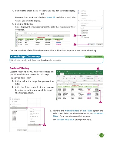 Excel displays the rows containing the cells that match your filter