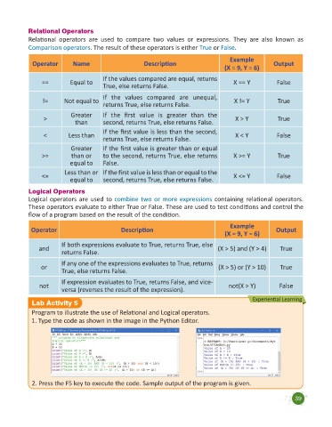 These operators evaluate to either True or False. These are used to test conditions and control the