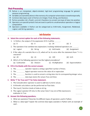 1. In Python, the output of the expression 24 % 3 will be ______.