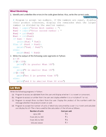 2. Write the output of the following code segments in Python: Computational Skills