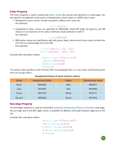 The Color property is used to specify the colour of text for various text elements in a web page. You