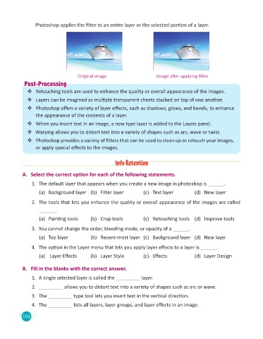 Photoshop applies the filter to an entire layer or the selected portion of a layer.