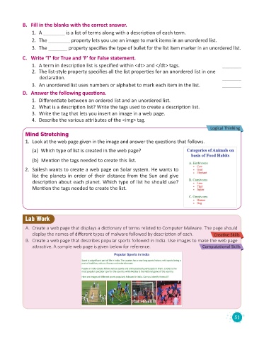 B. Create a web page that describes popular sports followed in India. Use images to make the web page