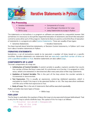 • Body of Loop: This is the set of statements that will be executed repeatedly.