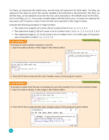 • The statement range (1, 10, 2) will create a list of numbers from 1 to 9 with a gap of 2 between