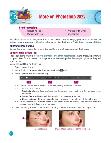 The Spot Healing Brush tool removes blemishes and other imperfections in the image. It paints with
