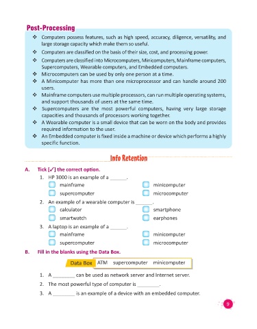 Computers are classified into Microcomputers, Minicomputers, Mainframe computers,