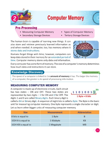 called a Bit or Binary digit. A sequence of eight bits is called a Byte. The Byte is the basic