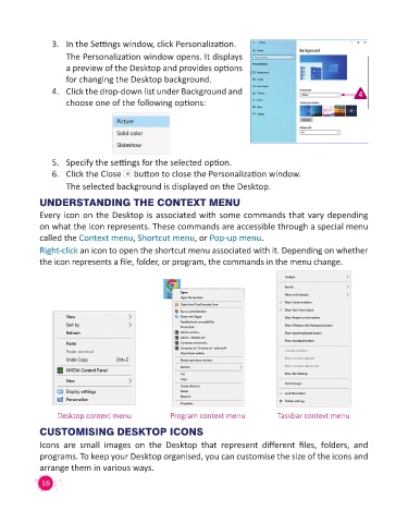 programs. To keep your Desktop organised, you can customise the size of the icons and
