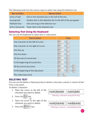 You can use the Delete or Backspace key to delete a character, a word, or a block of text