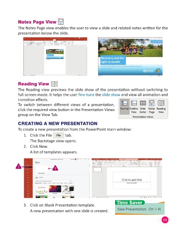 The Notes Page view enables the user to view a slide and related notes written for the