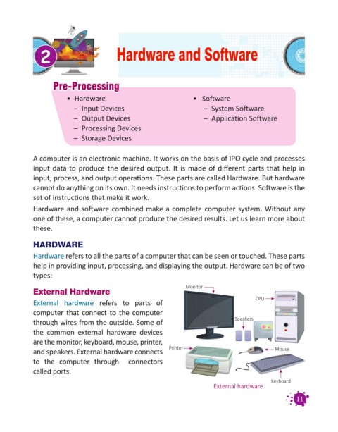 help in providing input, processing, and displaying the output. Hardware can be of two