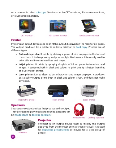 The output produced by a printer is called a printout or hard copy. Printers are of