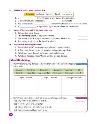 1. Identify the following devices and write them under the correct category Logical Thinking