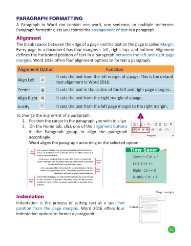 margins. Word 2016 offers four alignment options to format a paragraph.