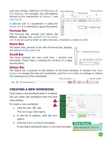 buttons to change the view of a worksheet, and the Zoom slider to enlarge or reduce