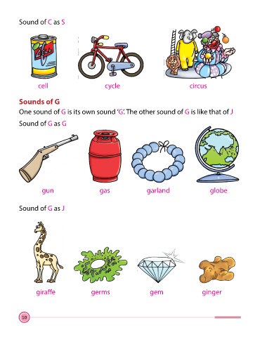 Sound of C as S cell cycle circus Sounds of G One sound of G is its own sound ’G’. The other sound of G is like that of J Sound of G as G gun gas garland globe Sound of G as J giraffe germs gem ginger 10 10