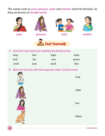 B. Match the pictures with their opposite male or female words.