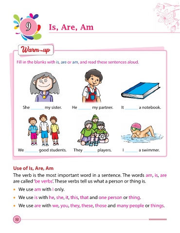 Fill in the blanks with is, are or am, and read these sentences aloud.
