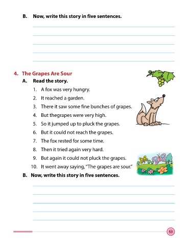 B. Now, write this story in five sentences.