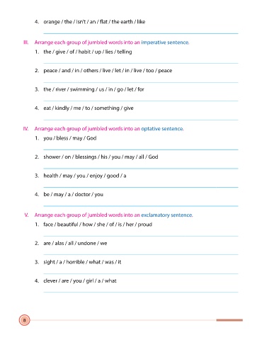 V. Arrange each group of jumbled words into an exclamatory sentence.