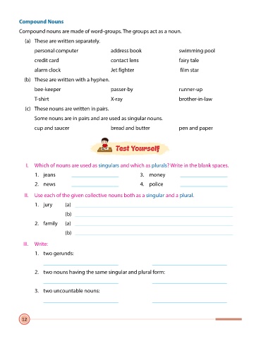 I. Which of nouns are used as singulars and which as plurals? Write in the blank spaces.