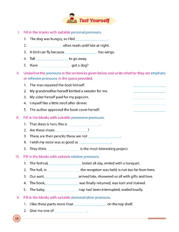 II. Underline the pronouns in the sentences given below and write whether they are emphatic