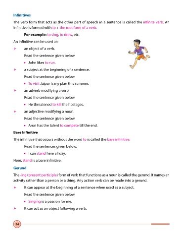 The verb form that acts as the other part of speech in a sentence is called the infinite verb. An