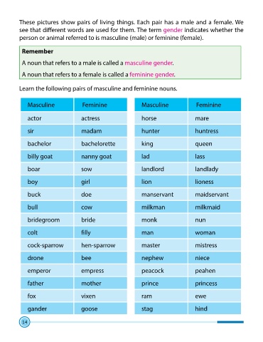 These pictures show pairs of living things. Each pair has a male and a female. We