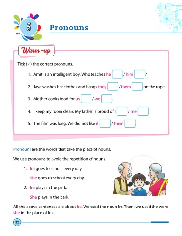 All the above sentences are about Ira. We used the noun Ira. Then, we used the word