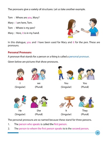 In this dialogue, you and I have been used for Mary and it for the pen. These are