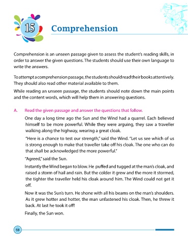 Comprehension is an unseen passage given to assess the student’s reading skills, in