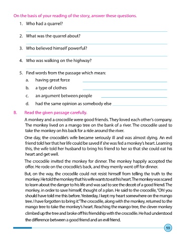 mango tree to take the monkey’s heart. Reaching the mango tree, the clever monkey