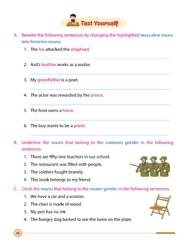 A. Rewrite the following sentences by changing the highlighted masculine nouns