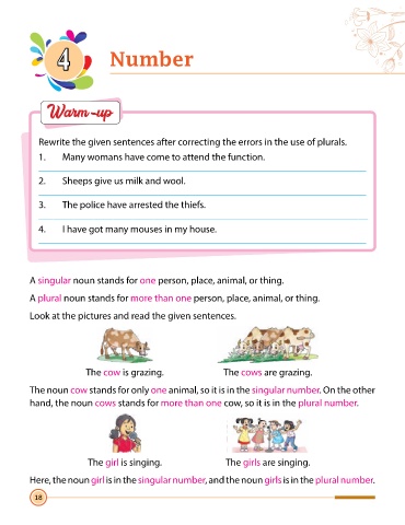 hand, the noun cows stands for more than one cow, so it is in the plural number.