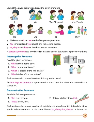Each sentence has a word in colour. It points to the noun for which it stands. In other